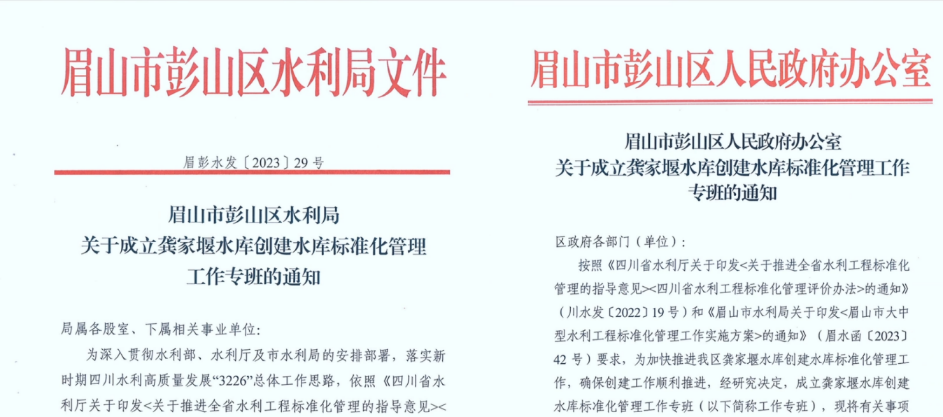 (一)凝心聚力,一张蓝图绘到底。自标准化创建目标确定以来,彭山区上下行动迅速,分别成立区政府工作专班和区水利局工作专班,建立健全水库工程标准化管理常态化工作机制,明确标准化管理工作目标任务并纳入年度目标考核;同时,由区财政安排专项经费支持,扎实推进水库工程标准化创建工作顺利进行。