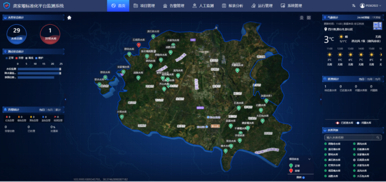 (三)创新驱动,数字建设“新引擎”。建立龚家堰水库标准化平台监测系统,将水库水雨情、视频监控、安全监测等关键信息接入信息化平台,能够实时获悉水雨情数据;建立3套视频监控系统,设置摄像头31个,实现水库重点区域全覆盖,且可通过手机实时查看,实现动态监测、超限报警功能;同时,建立水质在线监测设备,由专业公司运维,实时掌握库区水质情况,出现特殊情况时能够及时预警预报。